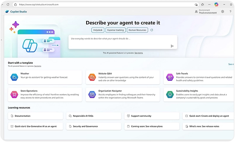 Empower makers to build agents in personal developer environments that unlock innovation while containing risk, with various admin controls. Enforce development best practices with application lifecycle management tools.