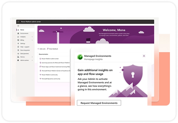 Streamline your governance strategy with guidelines, visibility, and access controls, all available in one place in the Power Platform admin center.